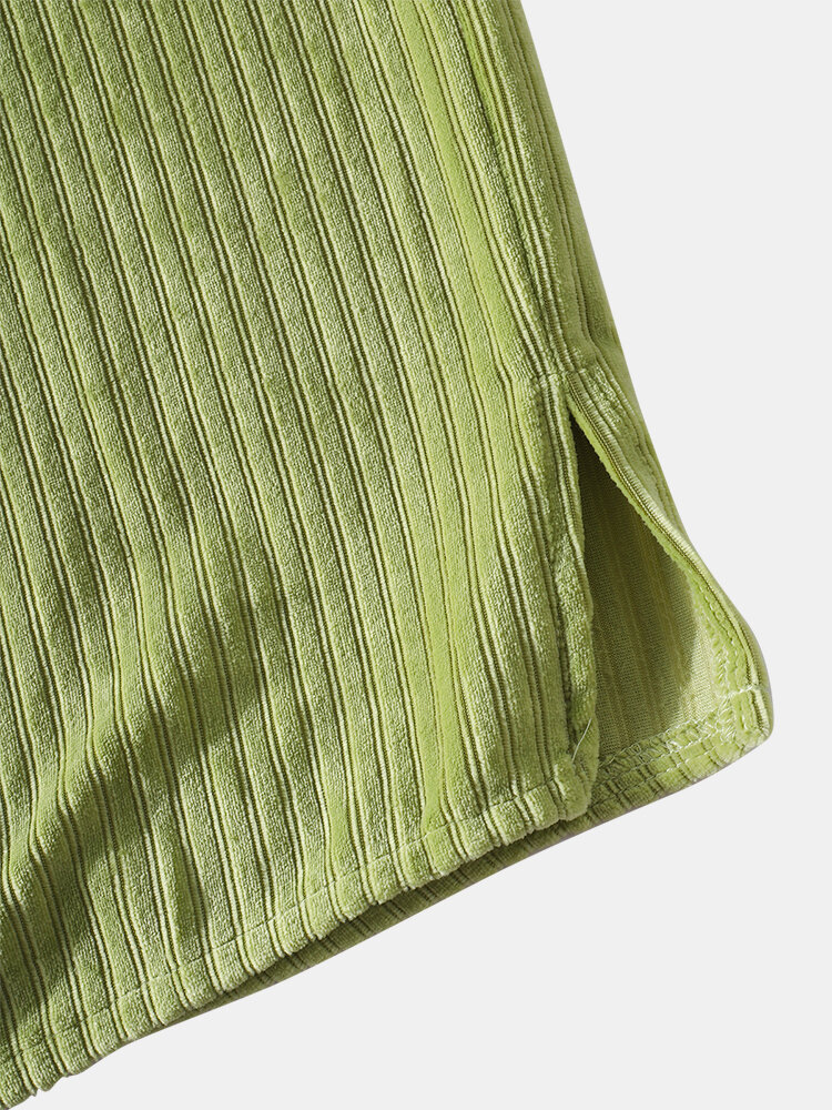 Corduroy Mens Solid Color Texture Short Sleeve Casual Henley Shirts